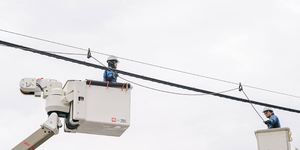 送電線や配電線、地中ケーブルなど、あらゆる設備が正常に機能することで、街にあかりが灯り、企業活動が滞りなく続いています。